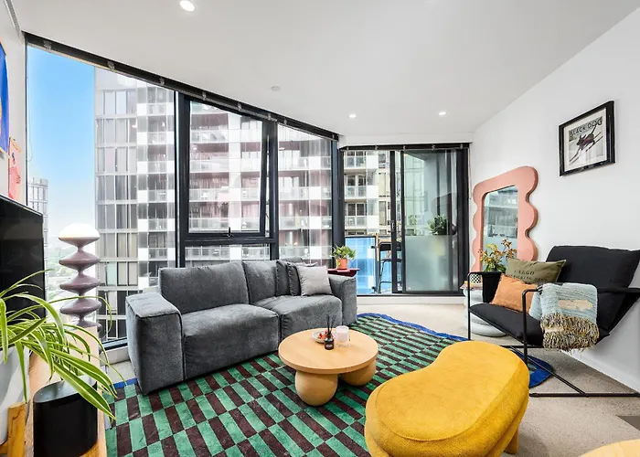 Souba Modern & Unique 2Br Apt - Free Parking Pool & Gym メルボルンはコリンズ・ストリートから徒歩で約20分で、メルボルン観覧車などの家族連れに人気のスポットから2.6キロメートル離れた所の場所にあります。 テラス付きのこのアパートはユーレカタワーすぐ近くに位置しています。